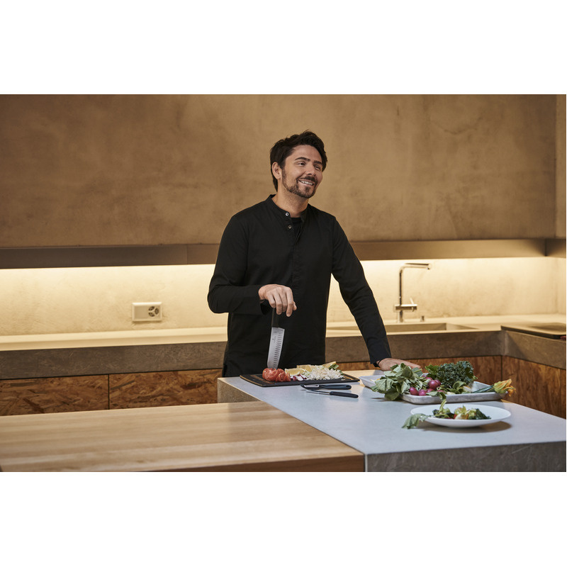 Schneiden, schnitzen, würfeln, zubereiten, wenden: Die vielseitigen Victorinox Gemüsemesser eignen sich für alle Arten der Gemüsezubereitung. Die große Auswahl an Klingenformen und -größen, sowohl gezahnt als auch ungezahnt, garantiert Ihnen für jedes Gemüse das perfekte Messer. 3-teiliges Gemüsemesser: 1. Gemüsemesser 6.7603 - Klinge: 8cm - Grifffarbe: schwarz - Länge: 19cm 2. Tomatenmesser 6.7833 - Klinge: 11cm - Grifffarbe: schwarz - Länge: 22cm 3. Gemüsemesser 6.7433 - Klinge: 8cm - Grifffarbe: schwarz - Länge: 19cm