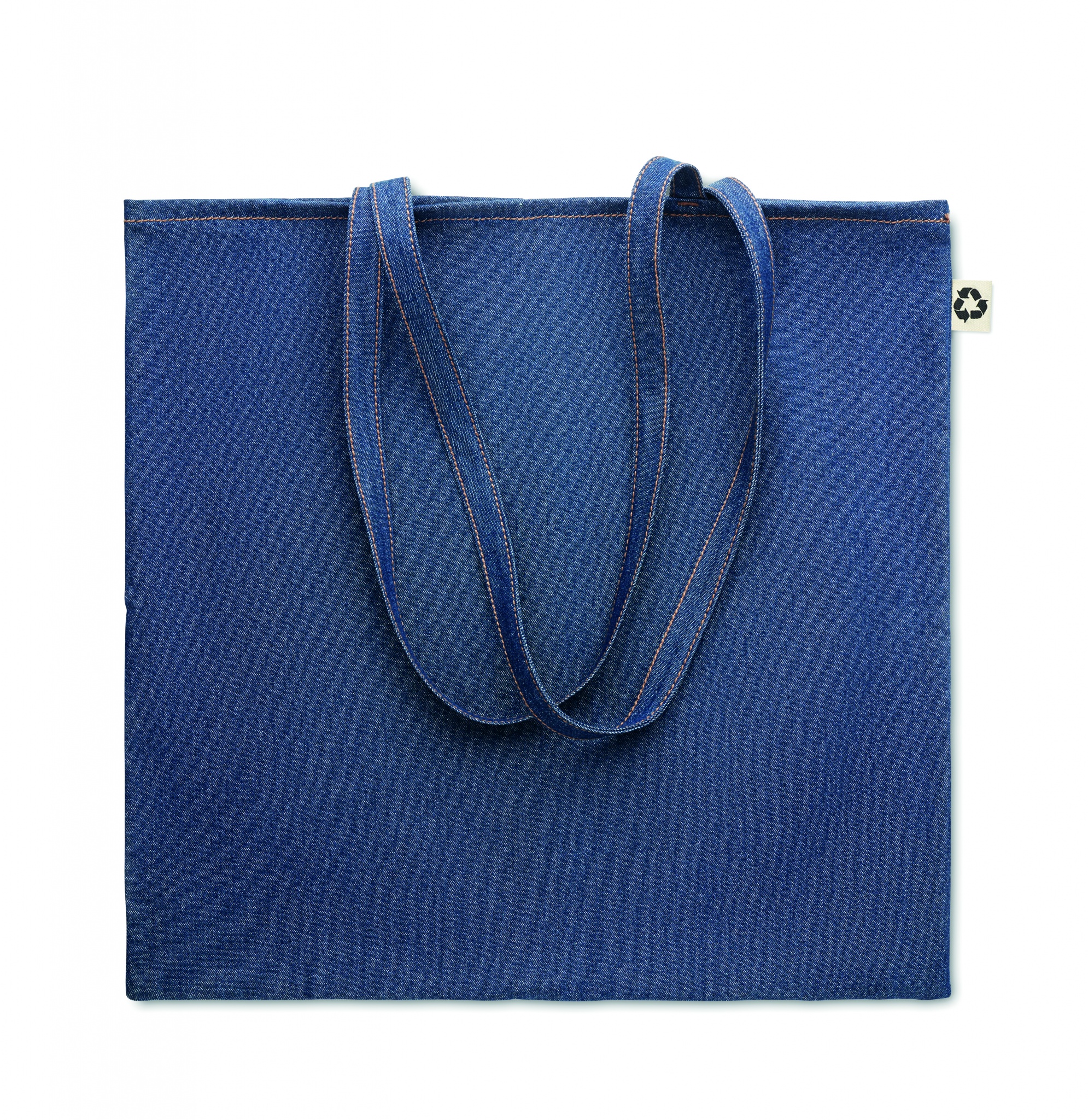 Denim Einkaufstasche mit langen Tragegriffen. 50% recycelter Baumwoll-Denim und 50% Baumwolle. 250 g/m².