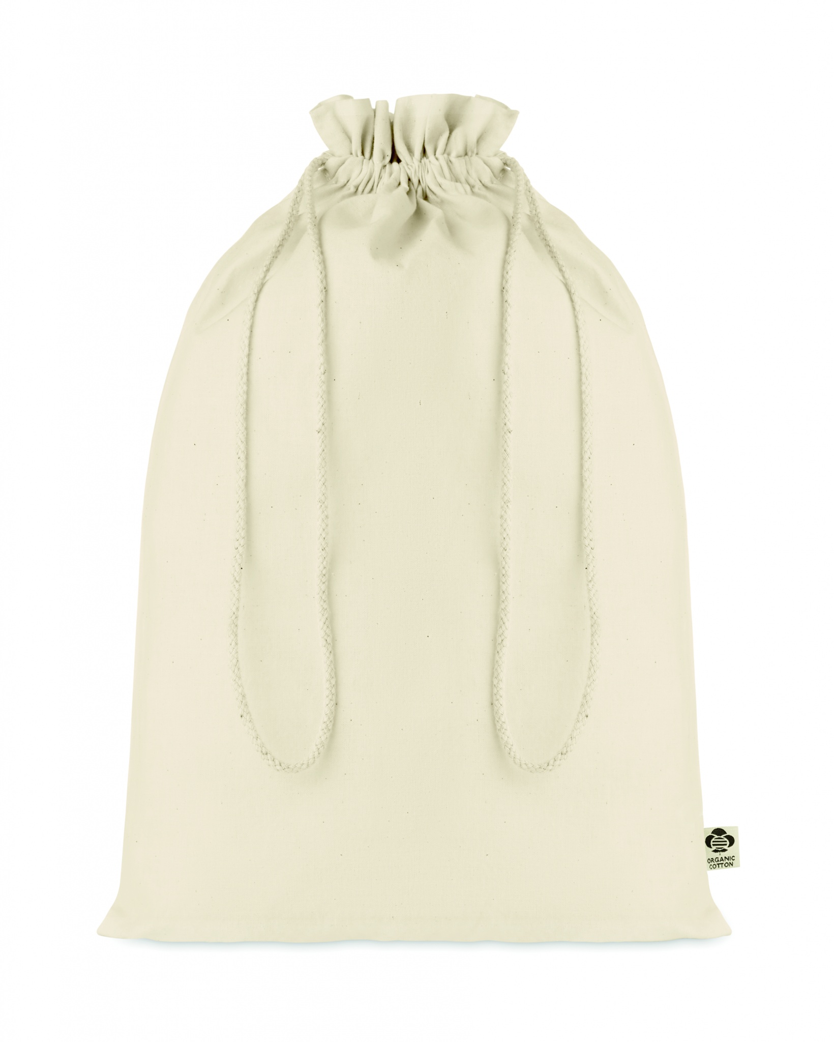 Großer Beutel mit Kordelzug. Organic Cotton. 105 g/m². Maße: 30 x 47 cm.