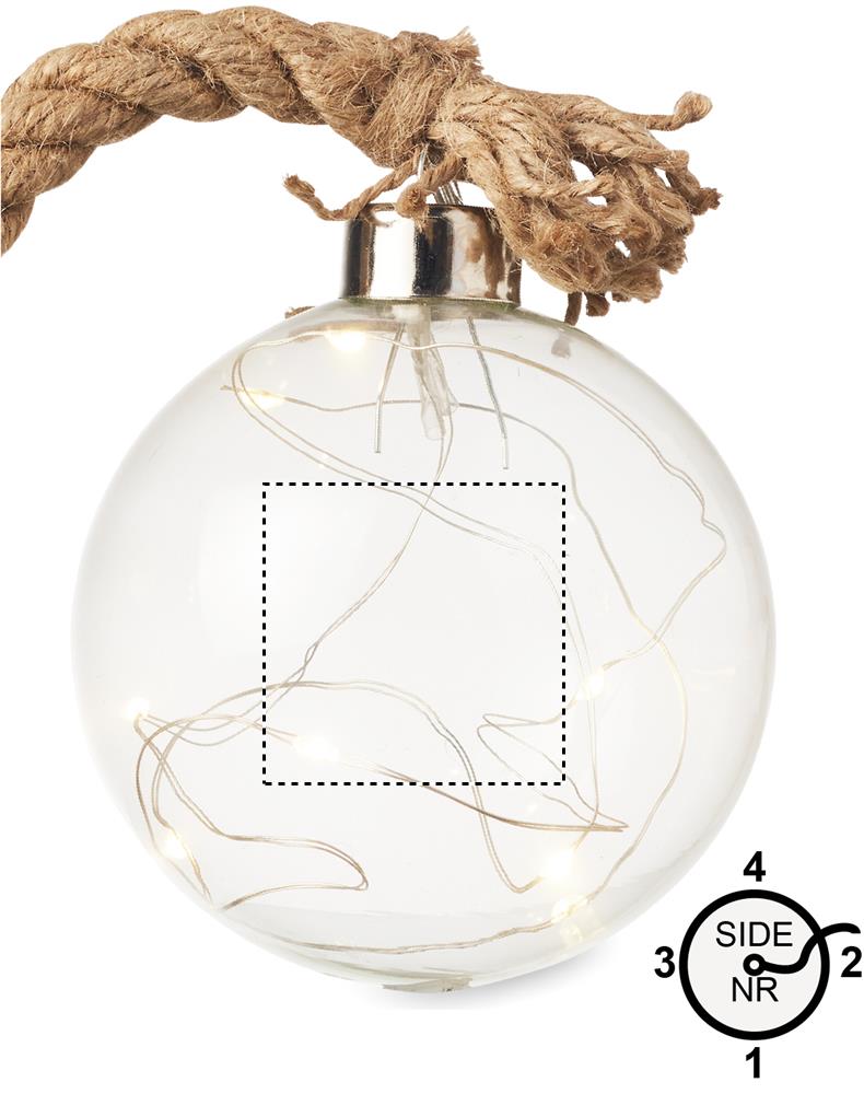 Glaskugel (Ø 8 cm)mit 8 warmgelben LED-Lichtern und Jutekordel. Exkl. 2 AA Batterien.