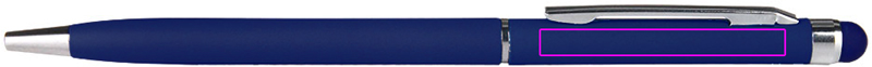Edelstahl-Kugelschreiber mit blauschreibender Kunststoff-Mine und farblich passender Touch-Funktion oberhalb des Clips. Ihre Werbung gravieren wir unterhalb des Clips.