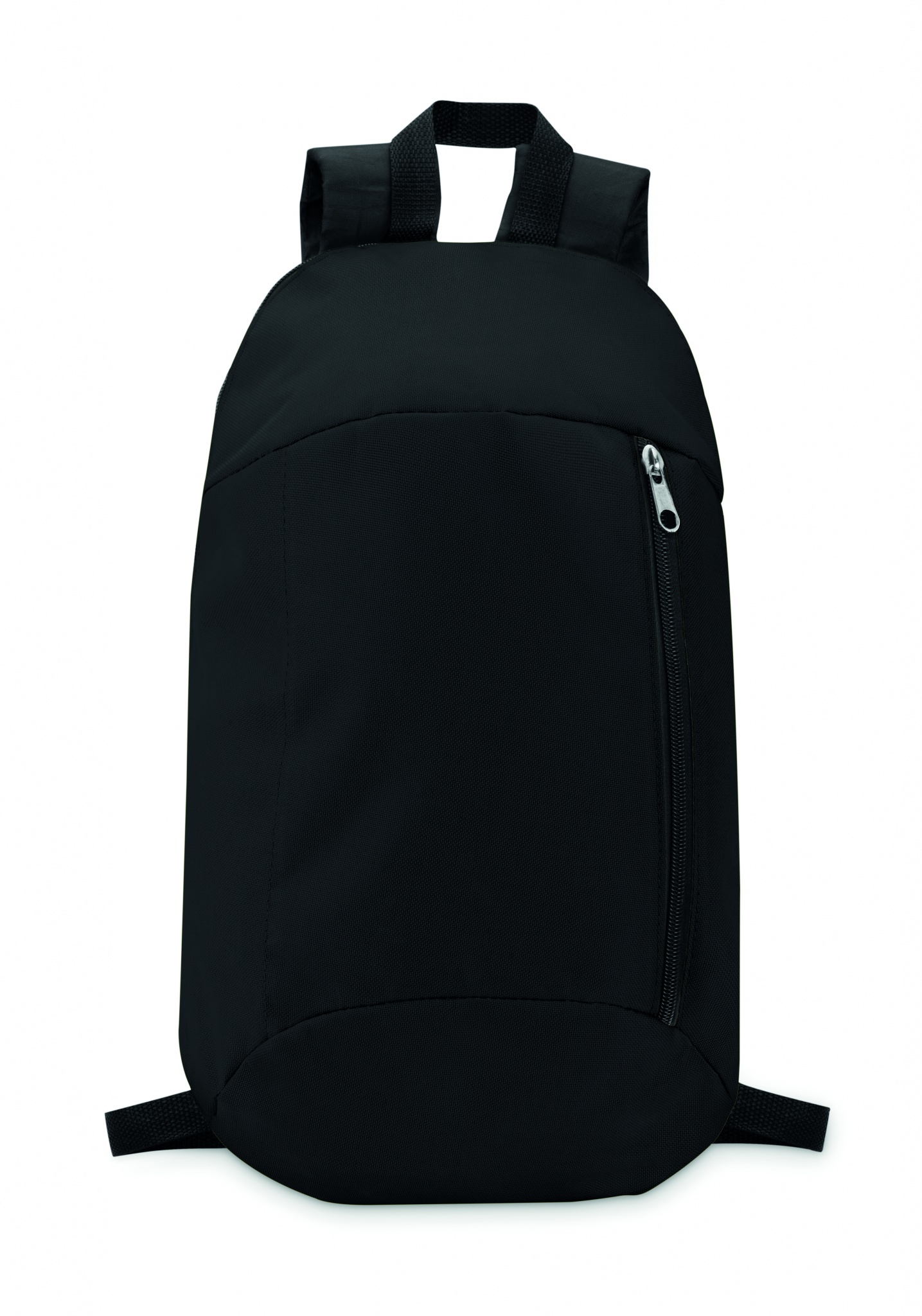 Rucksack mit Reißverschluss-Fronttasche. Gepolsterte Rückseite und gepolsterte Gurte. 600D Polyester, Rückseite aus 210D Polyester.