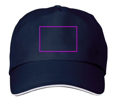 Baseball-Cap aus 215er Polyester mit Sandwich- und Klettverschluss. Ihr Logo drucken wir auf die Stirn.