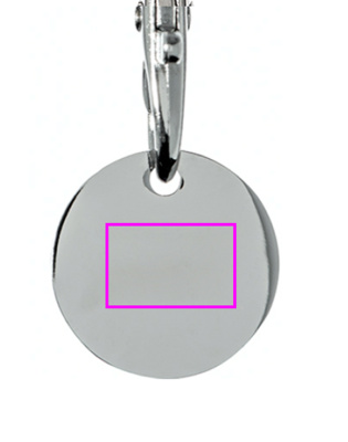 Schlüsselanhänger aus Metall mit Karabinerhaken und Einkaufsmünze. Eine Seite der Münze ist farbig. Ihre Werbung gravieren wir auf die silberne Seite.