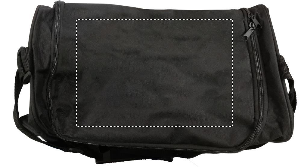 Sport-, Reisetasche aus 600D Polyester mit Reißverschlussfronttasche. Kleines Netzfach. Verstellbarer und abnehmbarer Schultergurt.