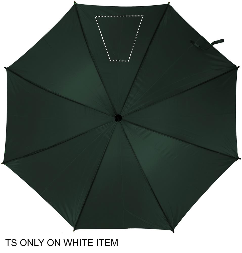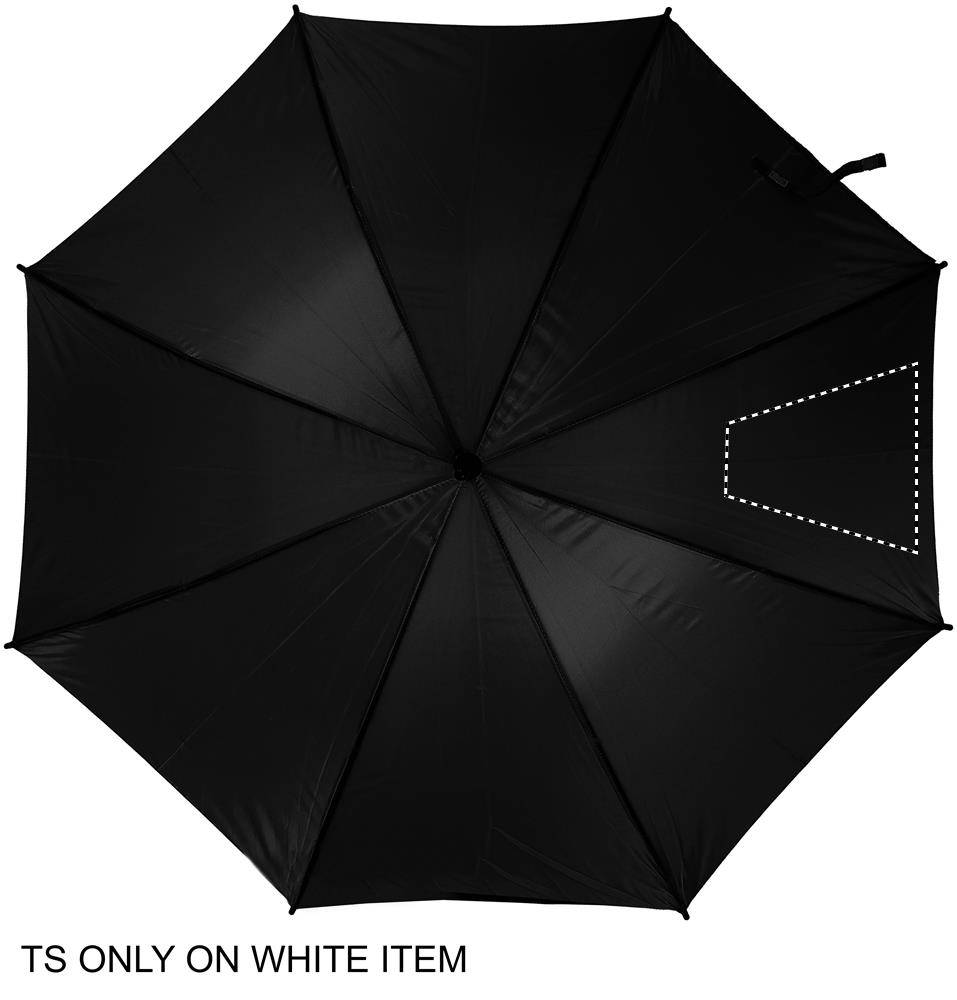23 inch manual open umbrella in 190T polyester with wooden shaft, tips and top. Black plating metal ribs. Curved wooden handle. Wood in natural finish. Manual closure.