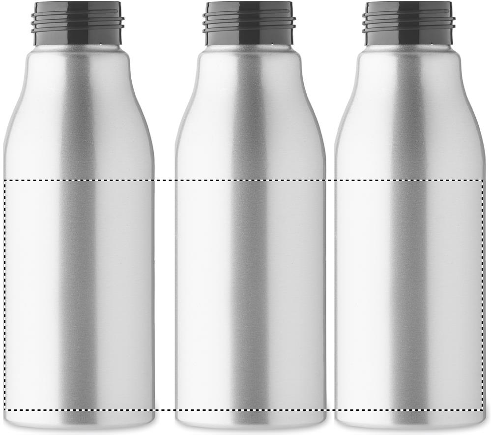 Single wall aluminium bottle with ABS lid with silicone hanger. Capacity 650 ml.