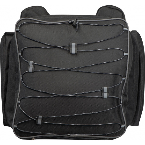 High-quality, large bicycle saddle bag that is attached to the luggage rack. With many functions such as elastic straps and several compartments to stow away. We will print your logo onto the bag.
