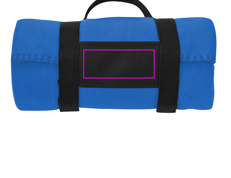 Snugly! This fluffy fleece blanket with carrying strap is ideal for getting cozy at home, or keep it in the car, as it is ideal for a picnic, camping, etc. Please check size when buying the blanket. We will print your logo onto the black surface between the straps.