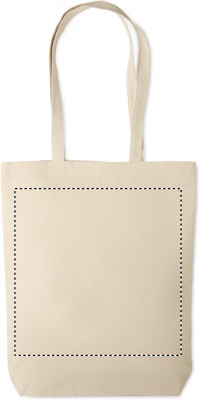 Canvas shopping bag with long handles and with bottom gusset. An ideal bag for your daily grocery shopping. The long handles make it easy to carry it by either holding it or hanging it over your shoulder. This canvas tote has a base gusset so you can carry more items than with a regular shaped bag. 270 gr/m².