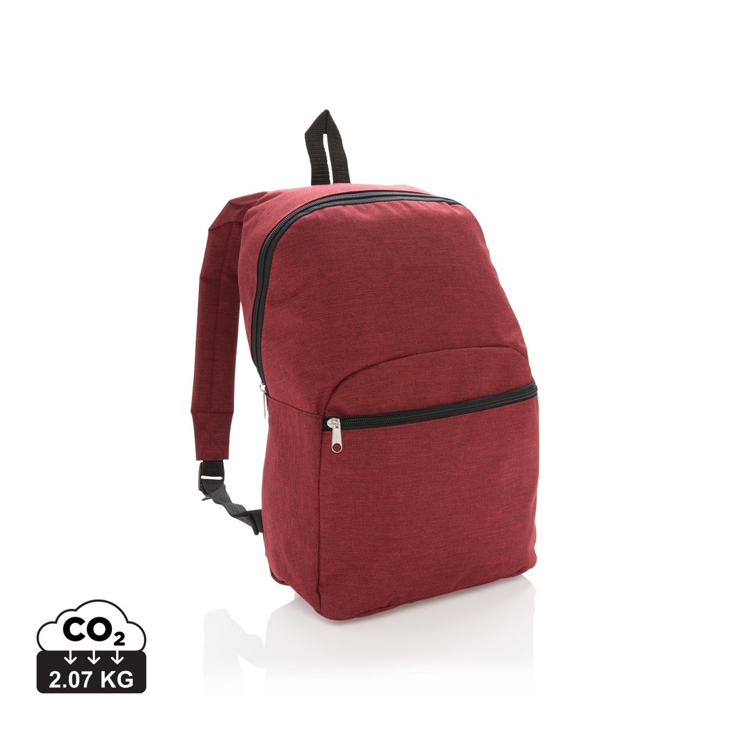 Compact and lightweight standard 600D two tone polyester backpack for everyday journeys. With an easy access front zippered pocket it’s your ideal travel companion.