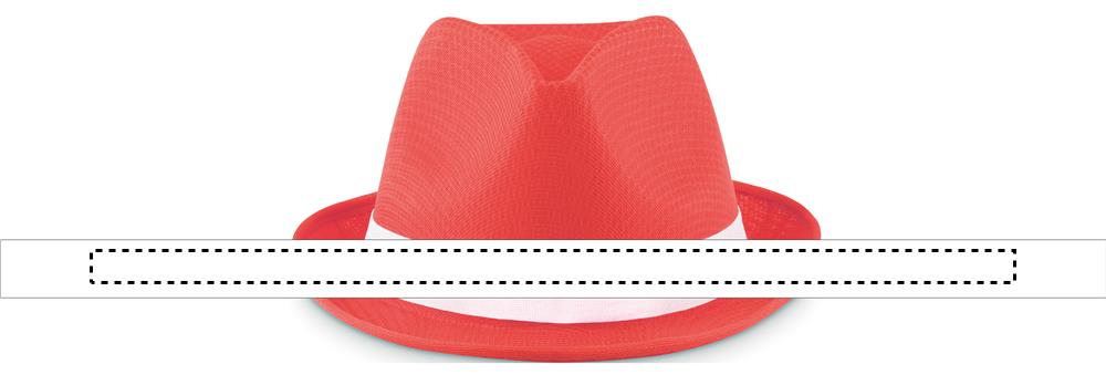 Coloured hat in polyester straw with white coloured band. For unprinted orders the band will be supplied unattached to the items