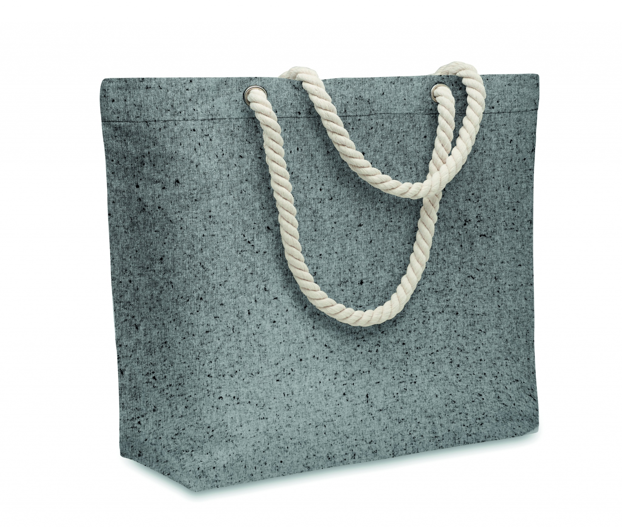 Beach or shopping bag in recycled cotton (80% recycled cotton, 20% regular cotton) with cord handles. 220 gr/m².