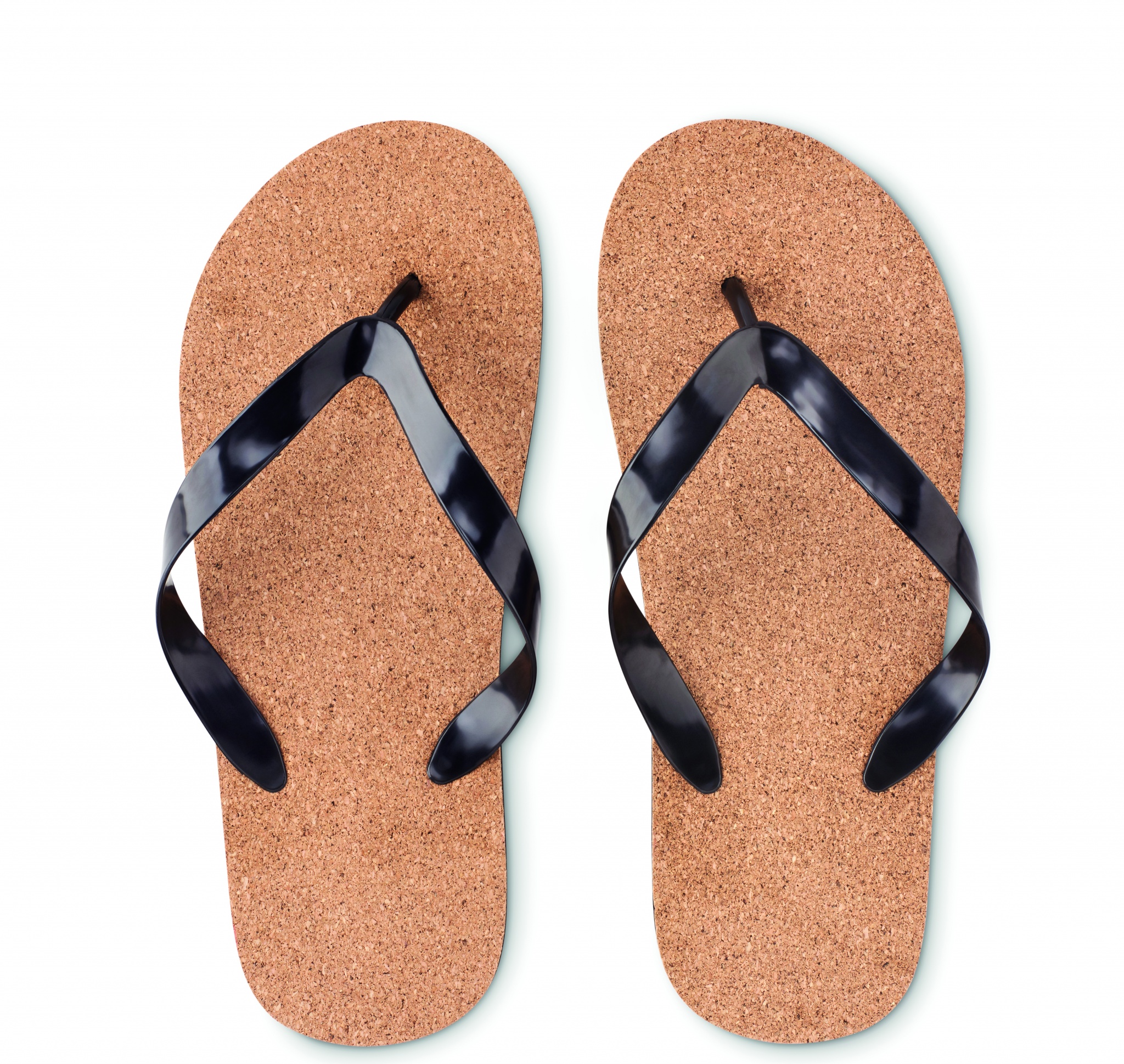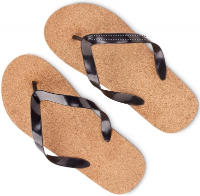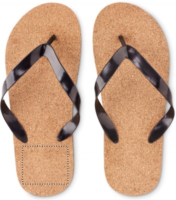 Beach slippers with cork and EVA sole and PVC straps. size M fits 36-39. Cork is a natural material, due to its structural nature and surface porosity the final print result per item may have deviations.