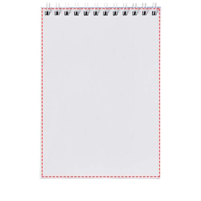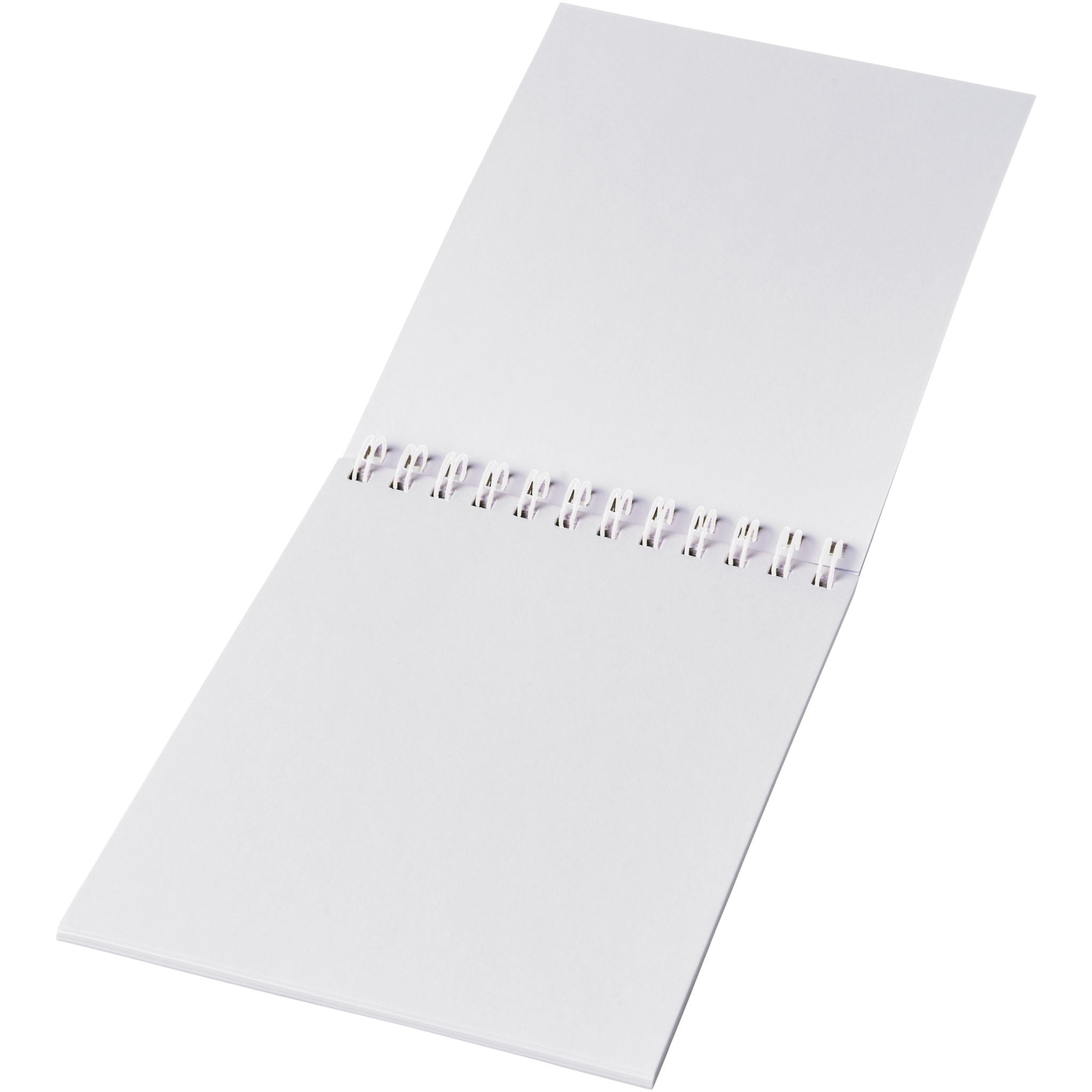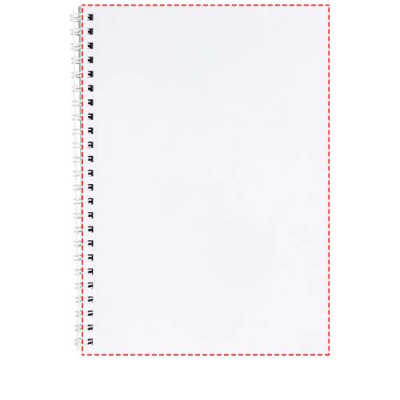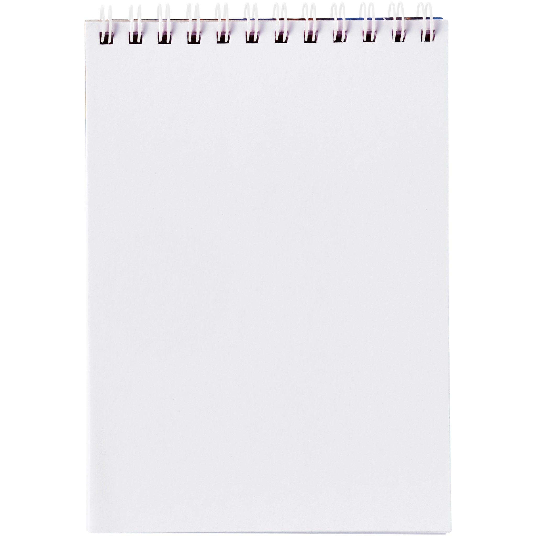 Desk-Mate® spiral A6 notebook. This notebook includes a white or black wire, a glossy card front cover (250 g/m2) and (80 g/m2) blank paper. Standard delivered with 50 sheets, also available with 80 sheets. You can customise the pages of this versatile notebook with any design - so whether you want lined paper, squares or dots - anything is possible!