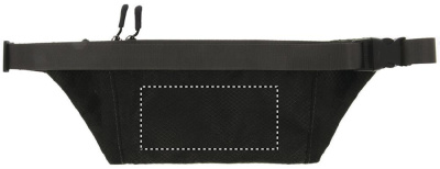 Fanny bag in jacquard polyester with 2 zippered front and 1 zippered back compartment and adjustable waist strap.