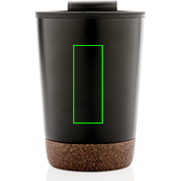 Start your day with your favourite beverage in this double wall coffee mug with recycled plastic inner and unique cork detail. Keeps your drinks warm for up to 3h and cold up to 6h. Made with GRS certified recycled materials. The inner is made from 100% GRS certified PP. GRS certification ensures a completely certified supply chain of the recycled materials. Total recycled content: 52% based on total item weight. BPA free. Capacity 300ml. Including FSC®-certified kraft packaging.
