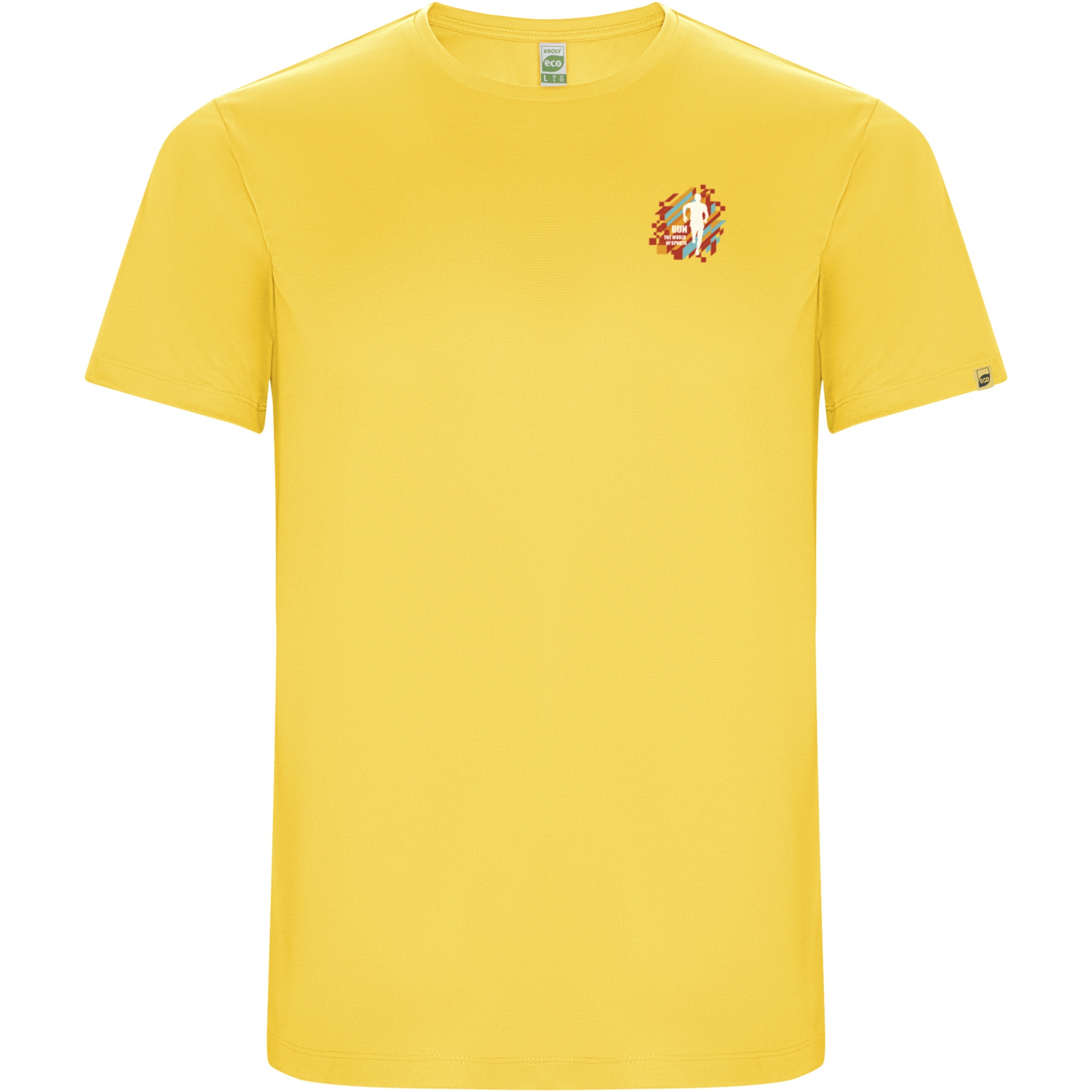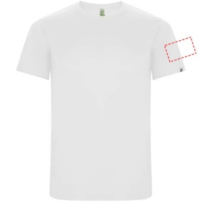 Technical short-sleeve t-shirt in recycled CONTROL-DRY polyester. Crew neck with matching covered seams. ECO logo label on sleeve. Packing in recycled material. Removable ECO label. Packing in recycled material. Technical fabric. The model is 115 cm and is wearing size 5/6.