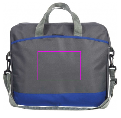 Gray laptop bag with bright colored accents, spacious interior compartment, and front compartment, on which we will print your logo.