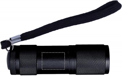9 LED aluminium torch. Delivered with 3xAAA batteries and a detachable strap. Presented in tin box.