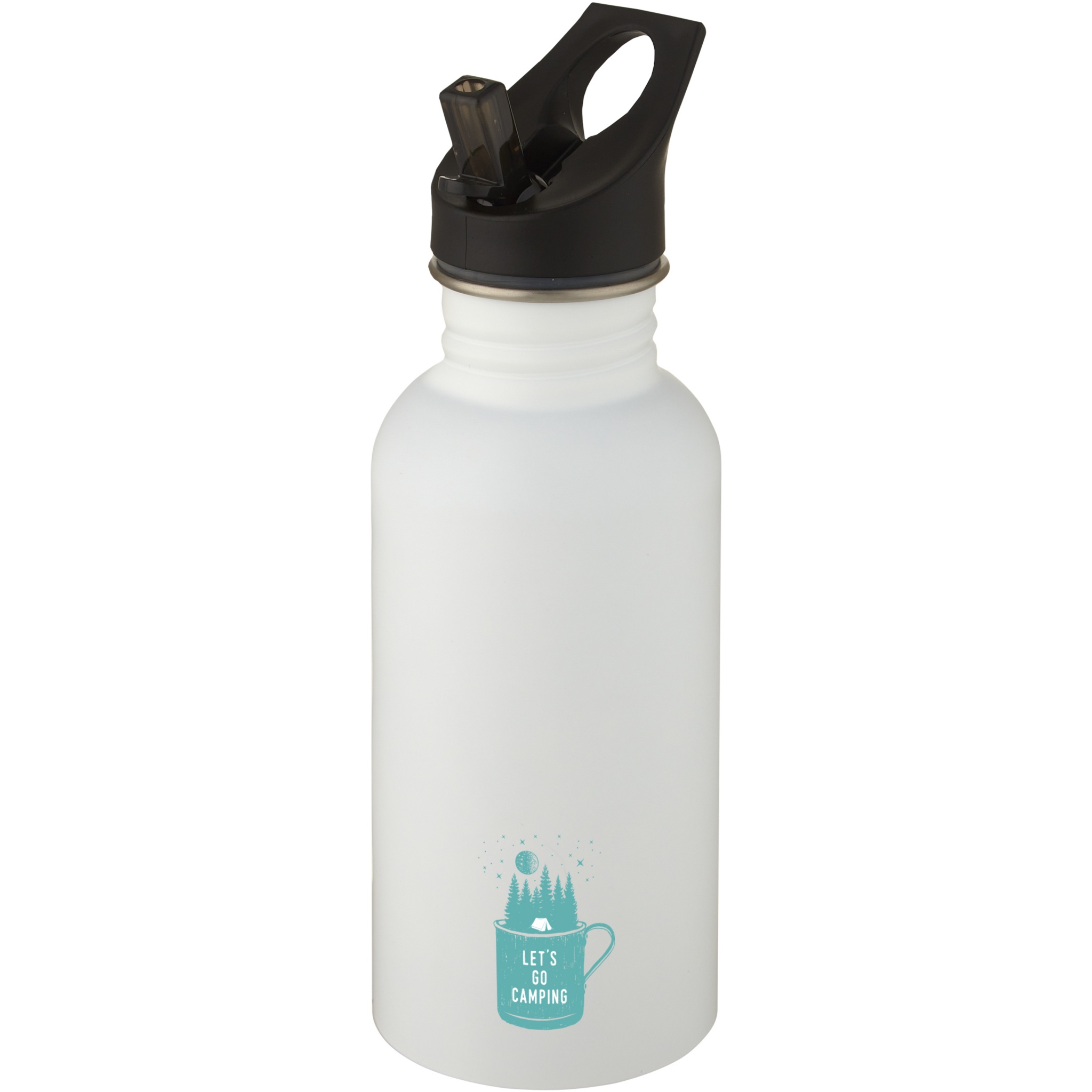 Staying hydrated at all times is possible with this durable yet lightweight 500 ml 18/8 stainless steel drinking bottle. It is the perfect companion while exercising, on day trips or at the office. The single-walled Lexi bottle has a matte finishing effect and offers plenty of space to add any kind of logo. The built-in carrying handle straw lid also makes is convenient to drink and carry the bottle around. The 44 mm opening fits icecubes and makes it easy to fill, pour and clean. BPA-free, tested and approved under German Food Safe Legislation (LFGB). Tested and approved for phthalates content according to REACH regulations. Hand wash recommended. Presented in a recycled cardboard gift box.