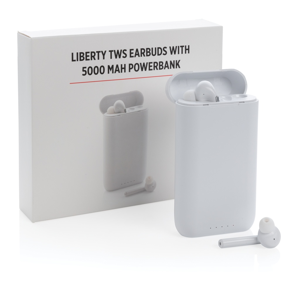 Logo trade advertising products picture of: Liberty TWS earbuds with 5.000 mAh powerbank