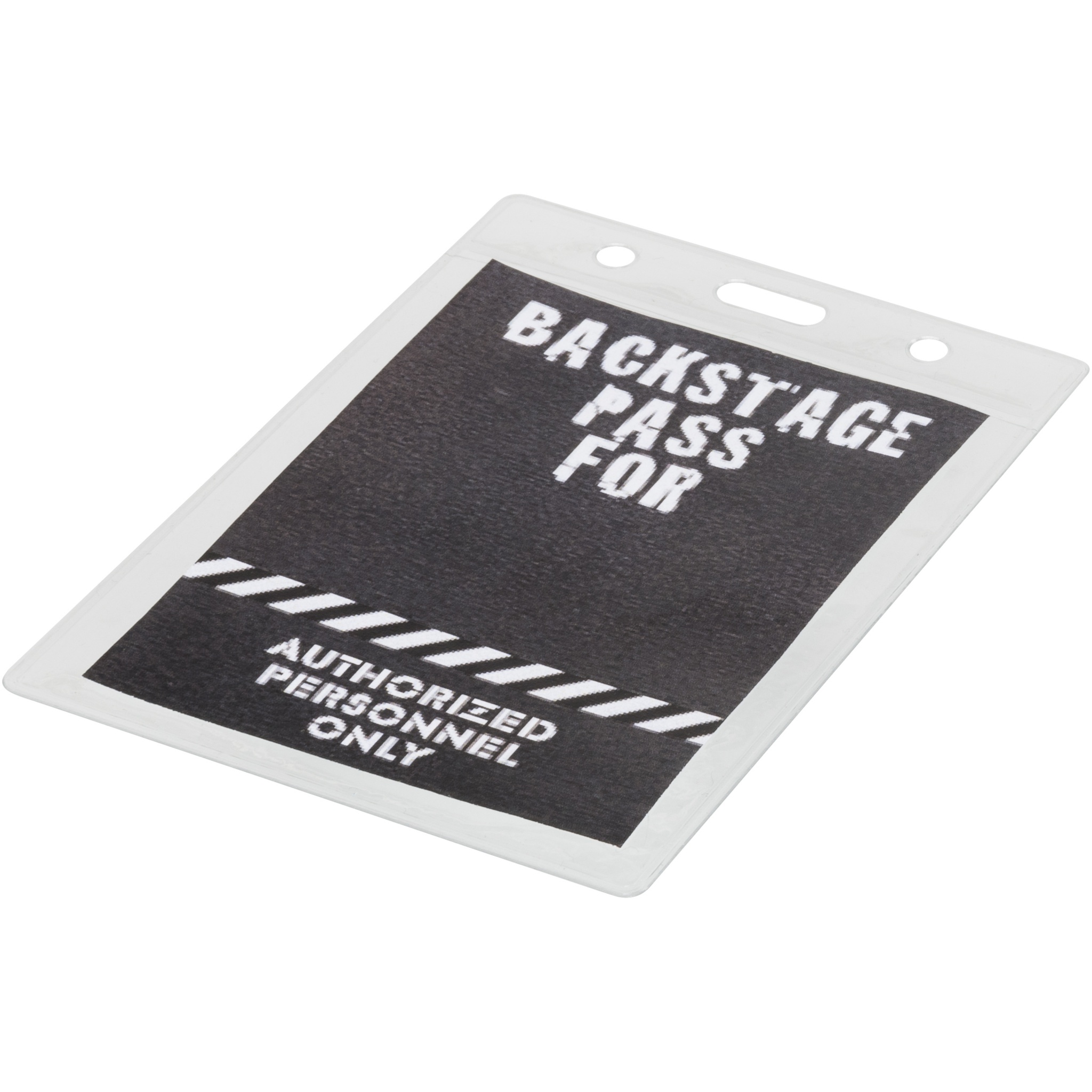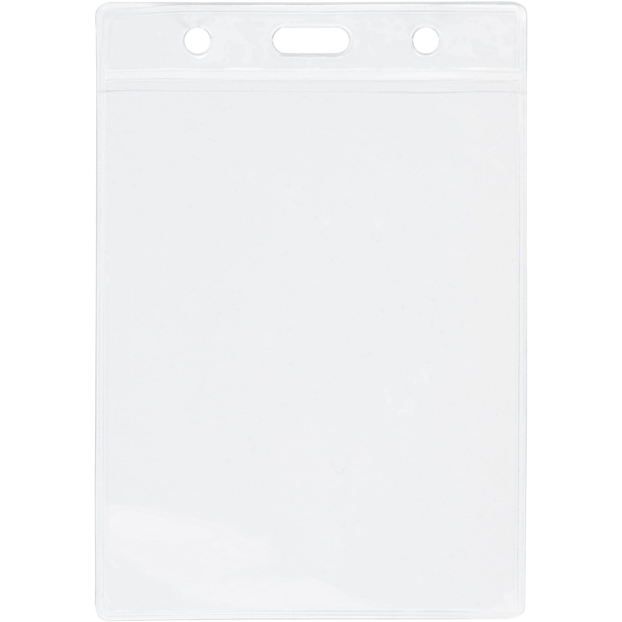 Badge holder with insert on the back and opening on top to attach to a lanyard or roller clip. This item fits a card of 9,4 x 8,3 cm.