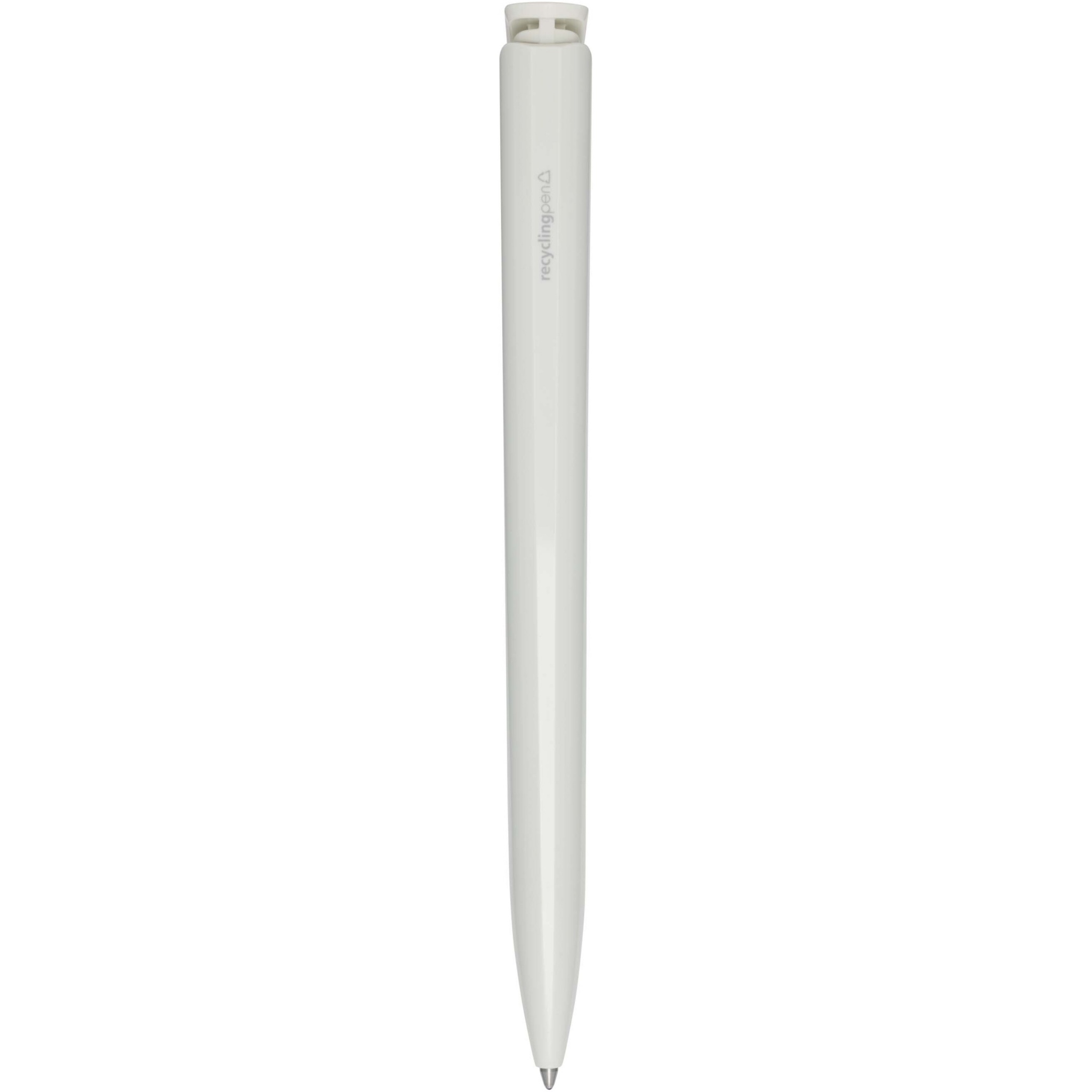 Ballpoint pen with the barrel and clip made from recycled plastic, and the tip made of stainless steel. Ink colour: Blue. Writing length: 3000 metres. Nib size: 1.00 mm. Made in Germany.
