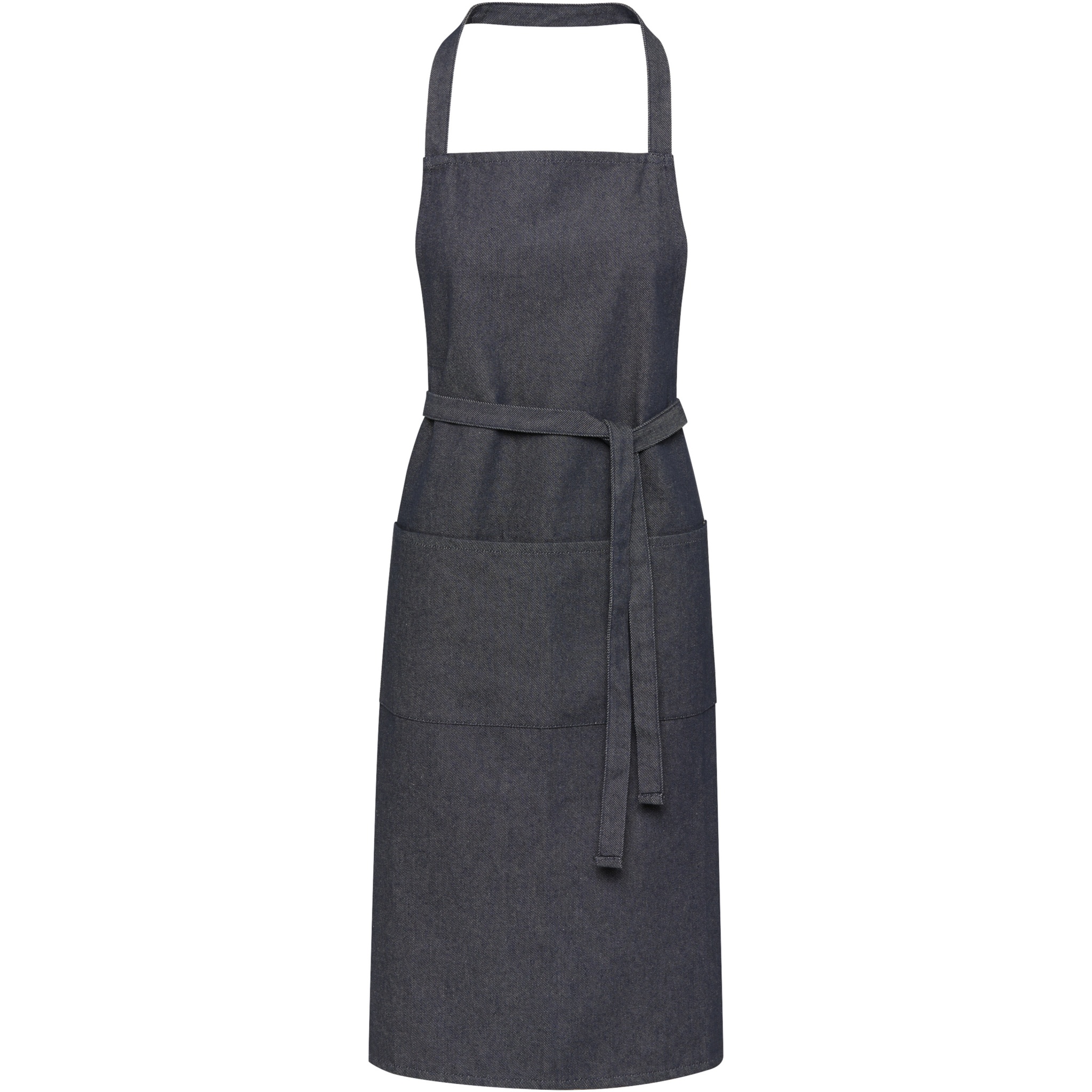 The Nima apron is made of 320 g/m² 70% recycled cotton and 30% recycled polyester making it thick and sturdy, and comfortable to wear. It features 2 adjacent pockets (each 22 x 20 cm), and a 1 metre tie-back closure. This apron also comes with an Aware™ tracer. This innovative feature allows users to trace the origins and journey of their item through a QR code, enhancing transparency in the supply chain and fostering a stronger connection between the product and its production process.