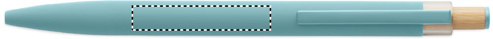 Recycled aluminium push ball pen with bamboo button with matching colour detail and matching metal clip. Blue ink.
