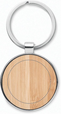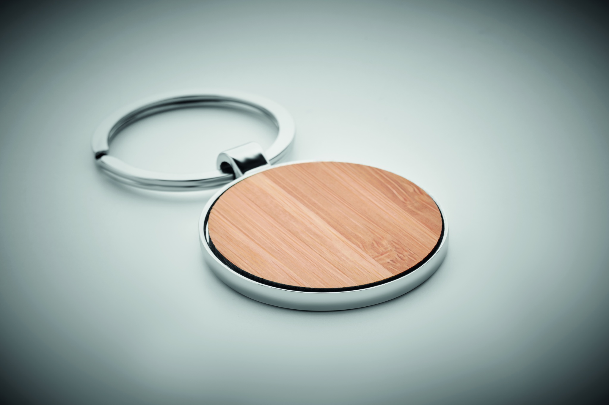 Logo trade promotional merchandise image of: Round key ring metal bamboo Dobele