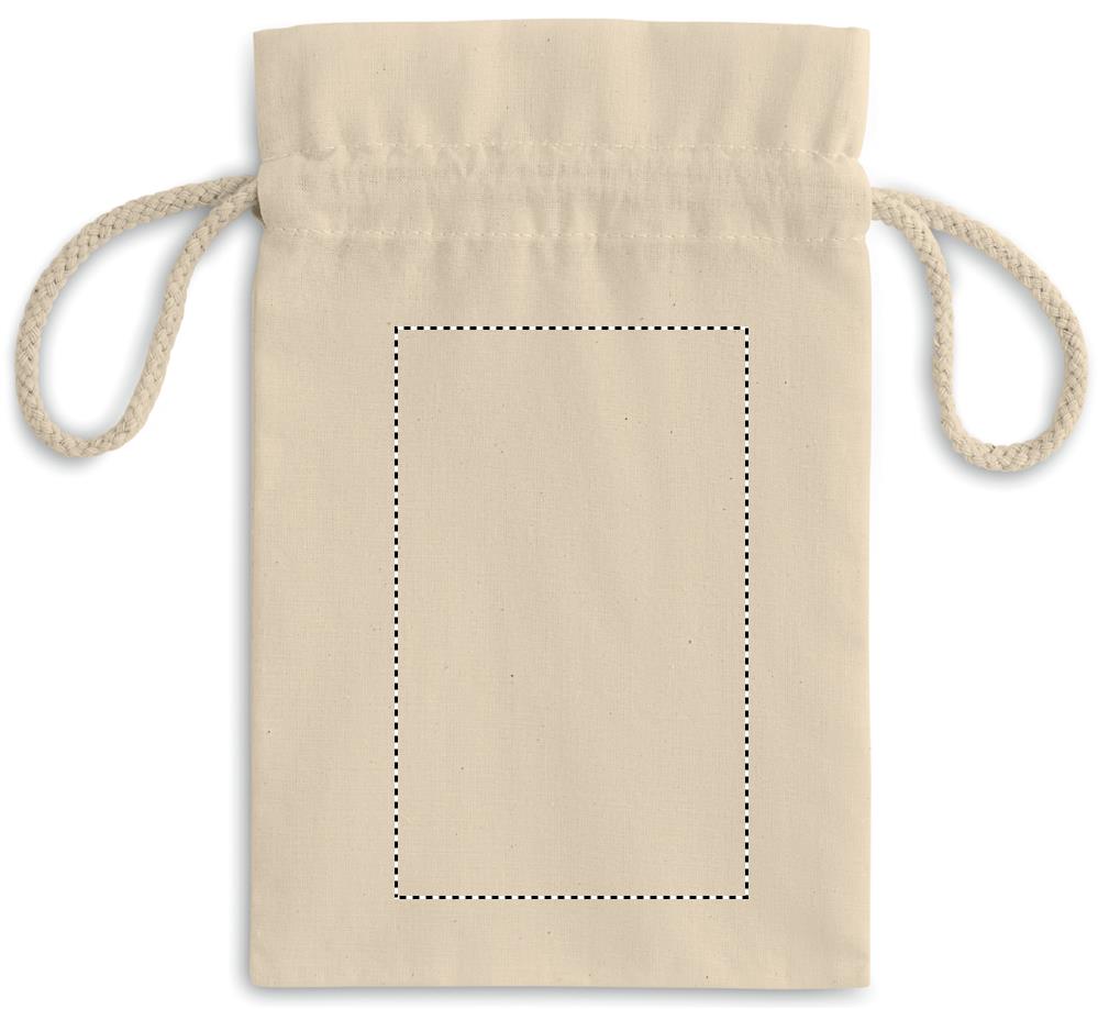 Small gift cotton draw cord bag. Size approx. 14 x 22cm. 105 gr/m².