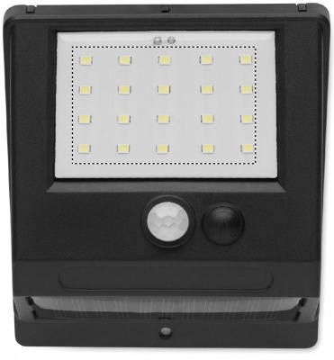 20 LED solar light in PP with motion and night sensors. PIR (Passive Infrared Sensor) motion sensor. CDS night sensor. Protection rating: IP 44. Battery capacity: 800 mAh.