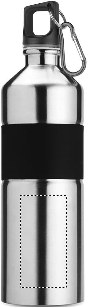 Single wall bicolour stainless steel bottle with rubber grip and carabiner hook. Capacity: 750 ml. The carabiner is not for climbing (non professional use). Leak free.