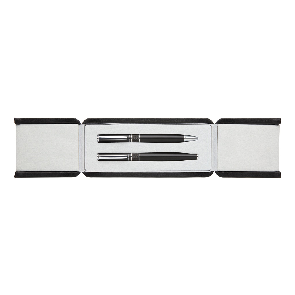 This luxury pen set brings elegance and style to your writing. The set consists of a ball pen and roller ball with blue ink in a beautiful gift box with embossed logo.The pen has a Dokumental ink refill with a t/c ball for ultra smooth writing. The roller ball has a blue Dokumental ink refill. Average writing length for both pens is 1200 metres.