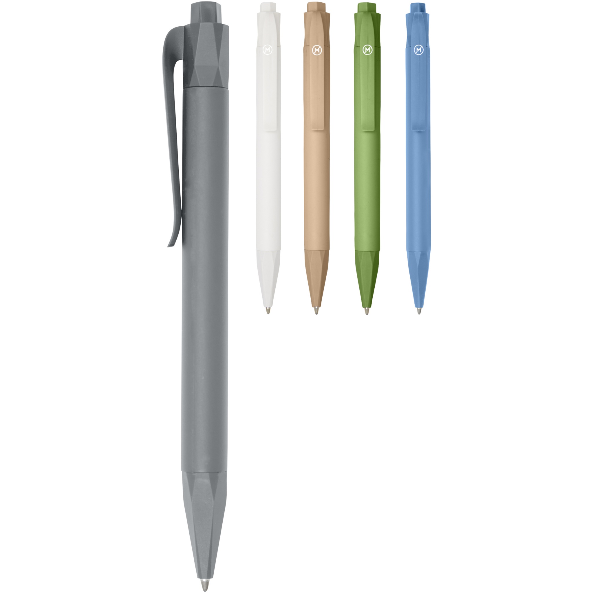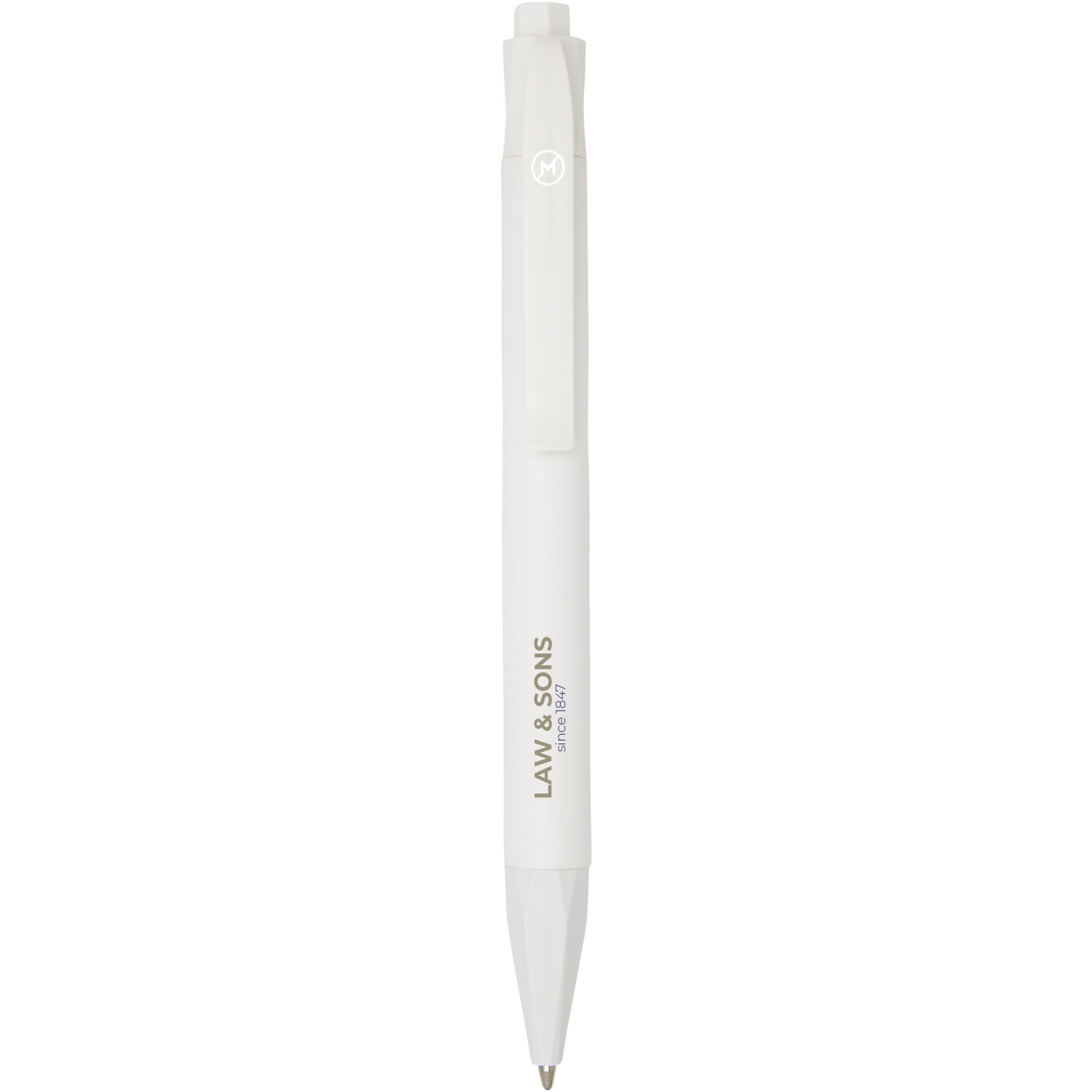 Click action longlasting and refillable ballpoint pen produced from 100% PLA (corn plastic) which reduces the amount of plastic used. Includes a refill with a writing length of approximately 2000 metres. The pen is delivered with a blue ink refill. Packed in a cardboard pen sleeve.