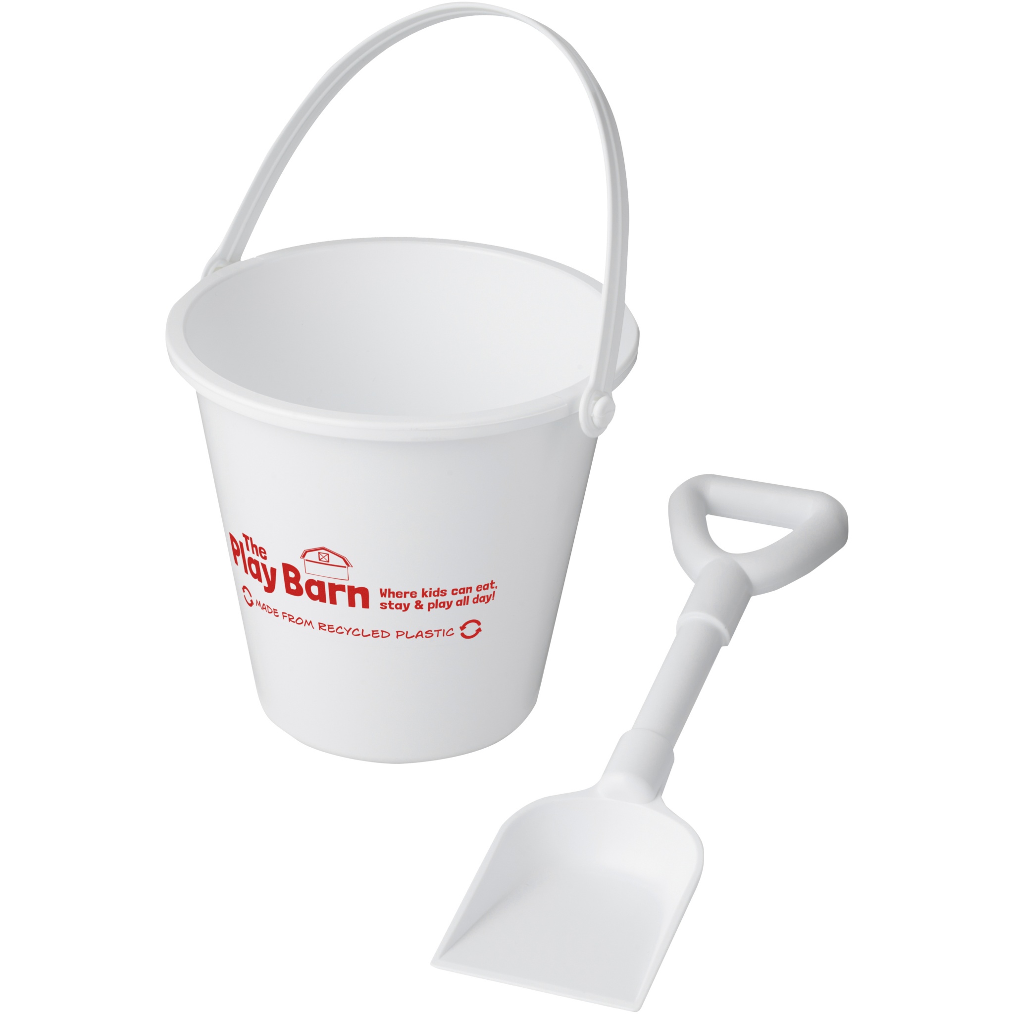 A beach essential made from post-consumer recycled plastic. The bucket and spade has a speckled finish due to the nature of the recycled material. Volume of bucket is 1250 ml. EN71 compliant. Available as matching colours, or contact us to mix and match!