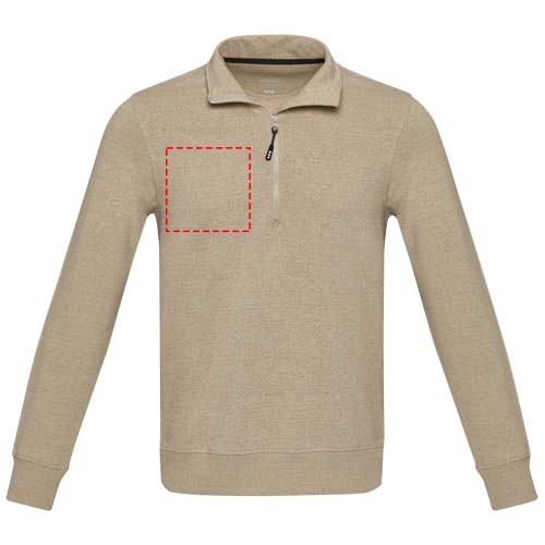 The Tin unisex Aware™ quarter zip sweater is made from 50% organic cotton and 50% recycled cotton. The functional quarter-zip design adds versatility and convenience, allowing you to easily layer the sweater and adjust comfort. The sweater incorporates Cyclo® recycled fibres where they use pre-sorted waste that determines the colour of the yarn. These fibres do not only reduce the demand for virgin resources but also exhibit a commitment to a circular life, embodying the essence of reducing waste and promoting a closed-loop system. Each sweater also comes with an Aware™ tracer. This innovative feature allows users to trace the origins and journey of their item through a QR code, enhancing transparency in the supply chain and fostering a stronger connection between the product and its production process.