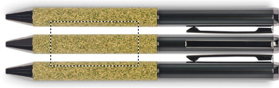 Twist metal ballpen with fabric on barrel made of 20% tea grounds, 30% cork, 50% polycotton cloth in carton box. Blue ink.