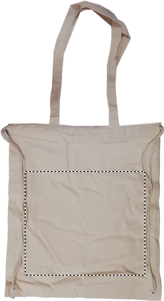 Pikkade sangade ja pingutusnööriga lõuendist ostukott. 220 g/m².
