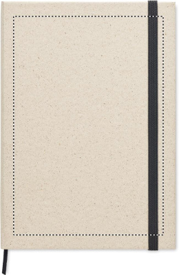 A5 murupaberist märkmik. Kõva murupaberist kate. Casebound. 160 murupaberiga vooderdatud lehte (80 lehte). 95 gsm paber. Elastne sulgemisrihm ja lindiga järjehoidja. 40% murukiude sisaldav murupaber.