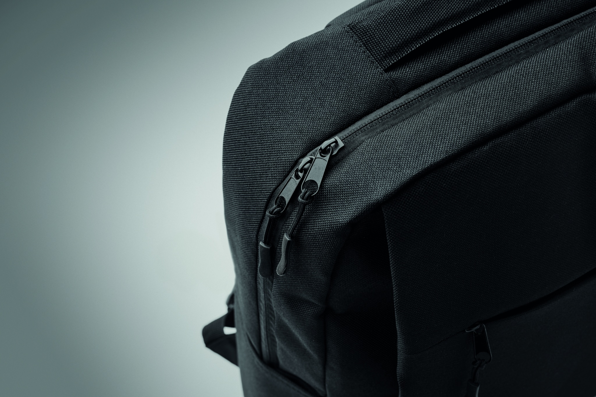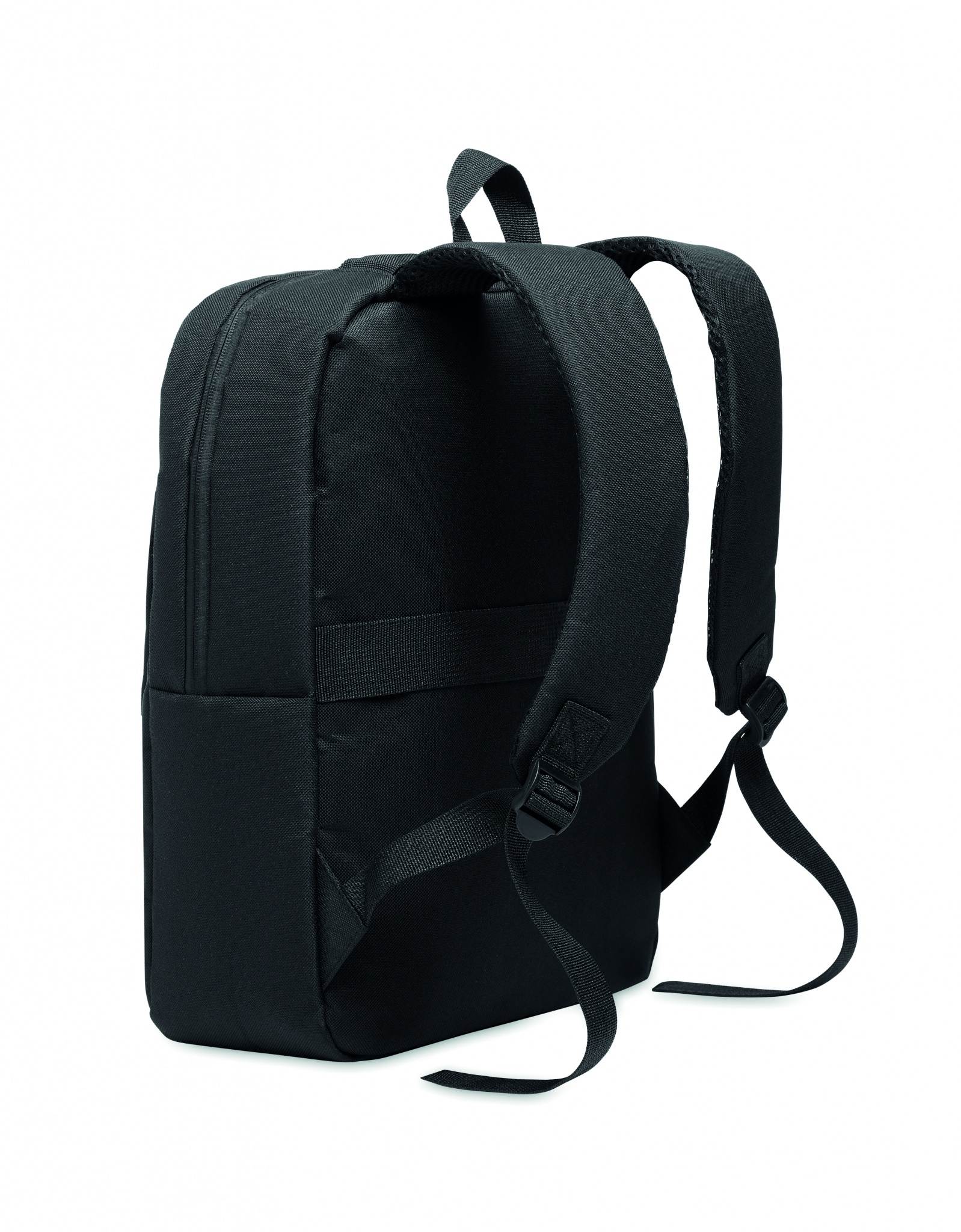 Õhuke seljakott 600D RPET polüestrist ja 210D voodriga. Sellel on 15-tolline sülearvuti sahtel, 10-tolline tahvelarvuti välimine lukuga tasku, 2 sisetaskut, 2 sisemist pliiatsitaskut, lukuga esitasku. 2 küljetaskut. Pehme polsterdatud selja- ja õlarihmad. Kohvri varrukas.