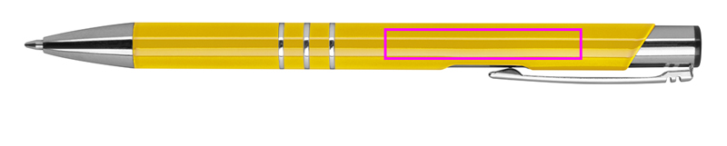 Täielikult lakitud metallist pastapliiats 3 dekoratiivrõnga ja suure mahutavusega sinise kirjaga täidisega. Teie logo graveeritakse klipist paremale.