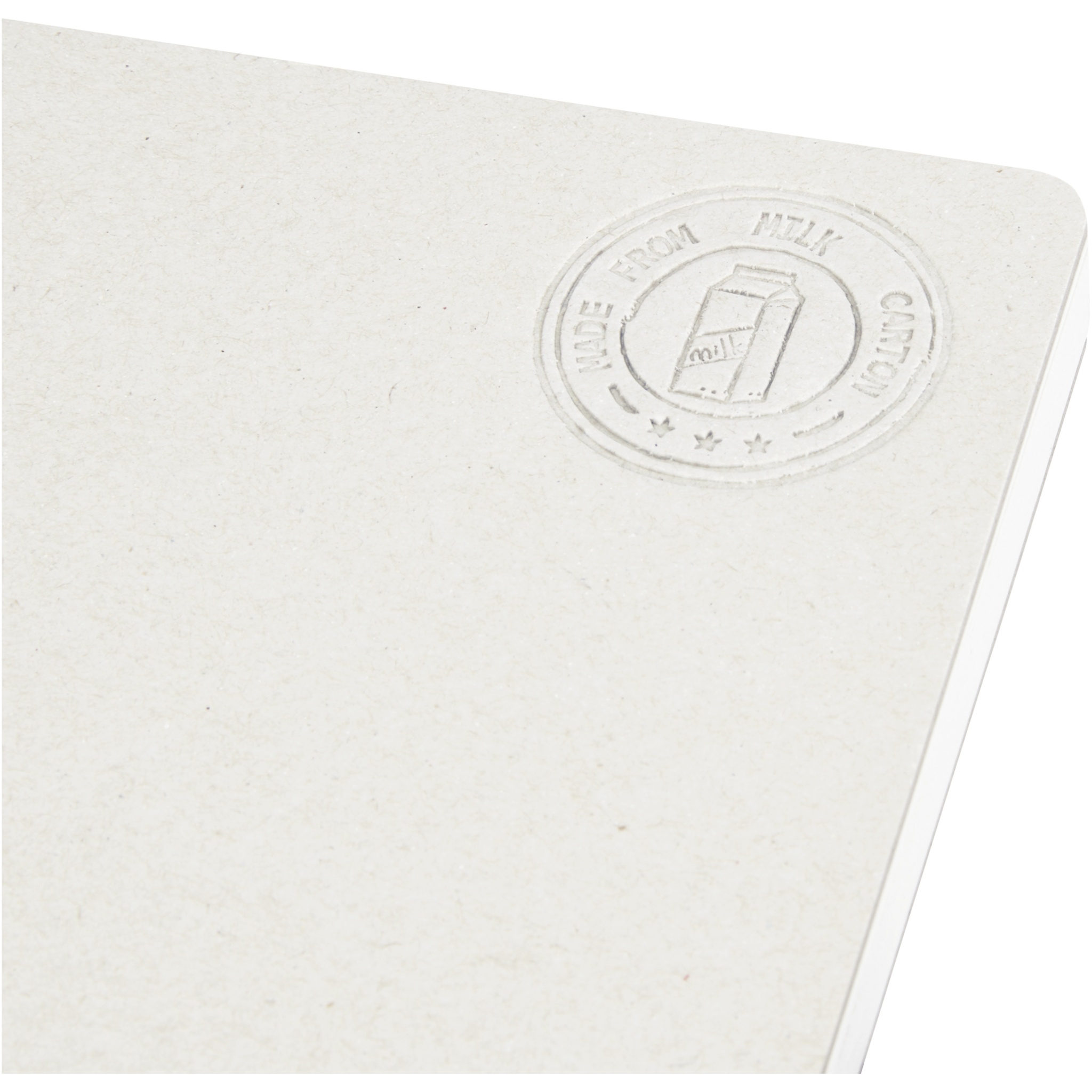A5-formaadis tugiseljata sülearvuti 80 80 g/m² vooderdatud lehega, mis on valmistatud taaskasutatud piimapakkidest (kuni 70%). Kasutatud piimapakke kogutakse, sorteeritakse, töödeldakse ja muudetakse paberiks, muutes jäätmed tõeliselt kasulikuks.