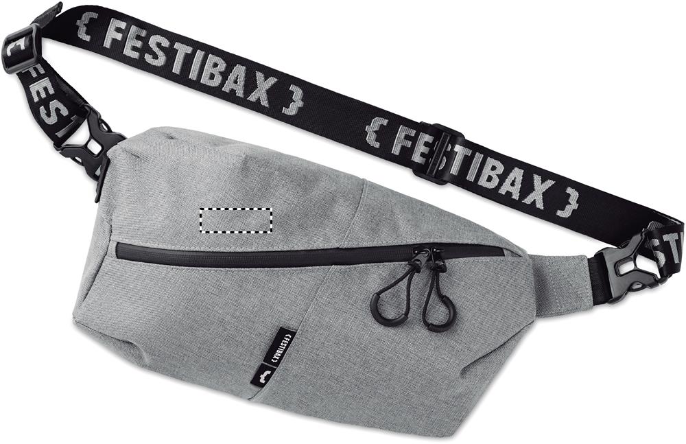 Festibax® Basic. 300D 2-tooniline katioonvärvitud polüester lukuga, eemaldatava ja reguleeritava rihmaga. Kaasa arvatud vargusvastane sahtel ees ja taga. Ülim festivalikott.
