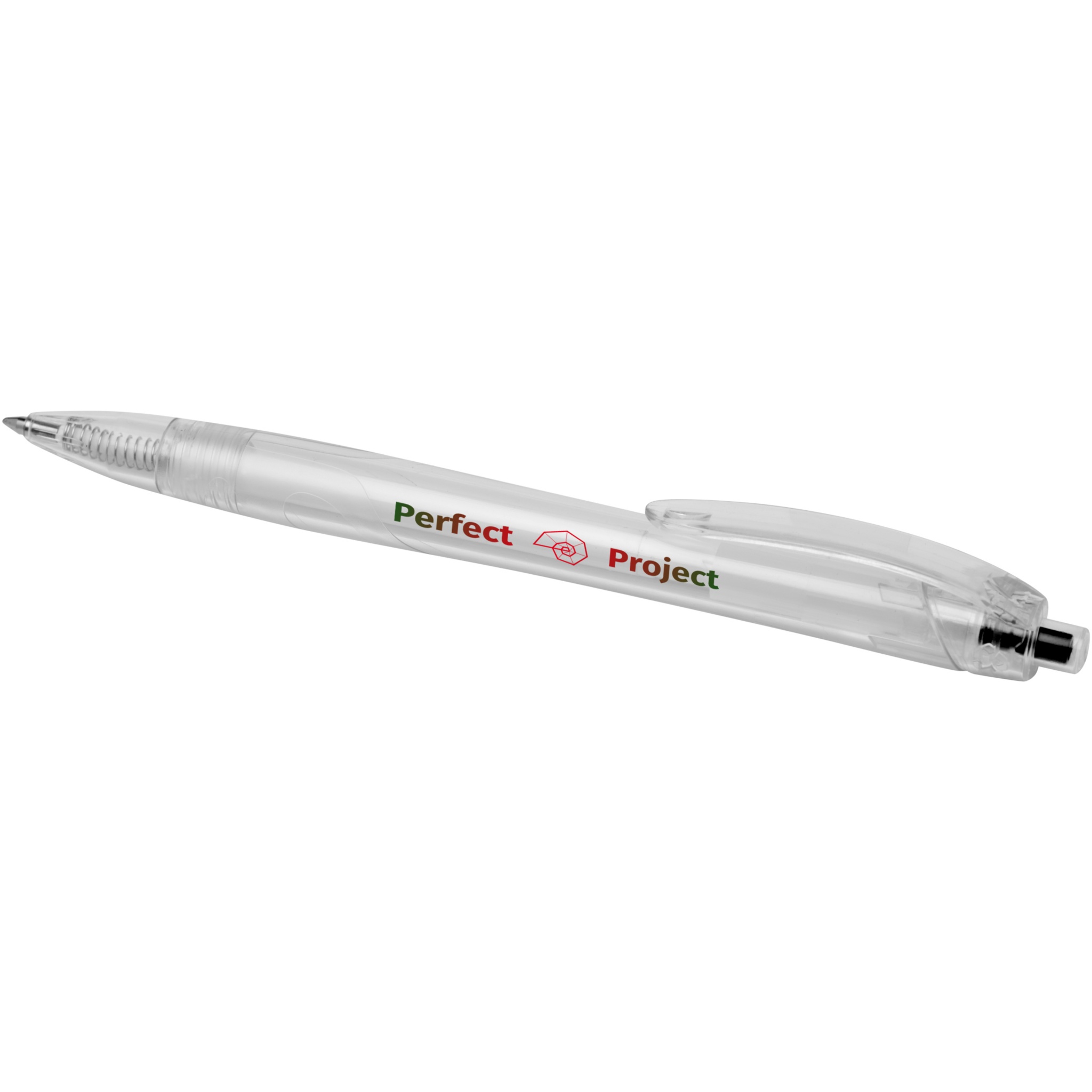 Click action pastapliiats, mis on valmistatud taaskasutatud PET-st, vähendades esmase plasti kasutamist. Pastapliiatsil on läbipaistev toru ja värviline nupp. See on eellaaditud sinise täidisega ja seda saab kombineerida 107763 Honua RPET sülearvutiga.