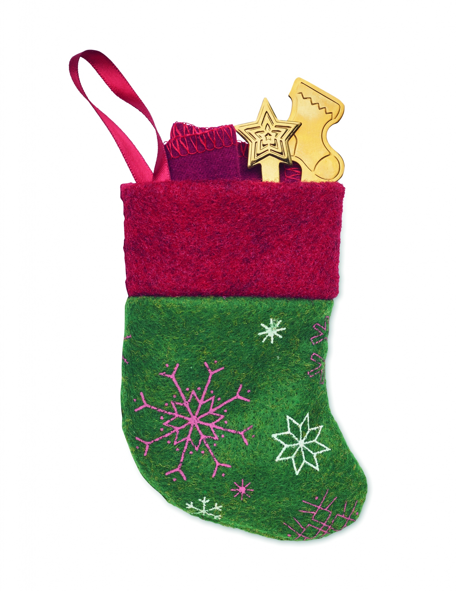 Jõulumagustoidu söögiriistade komplekt koos kahvli ja lusikaga roostevabast terasest koos 150 gr/m² puuvillase salvrätikuga. Esitatakse jõulusukakujulises kotis.