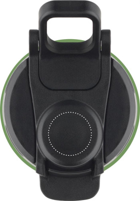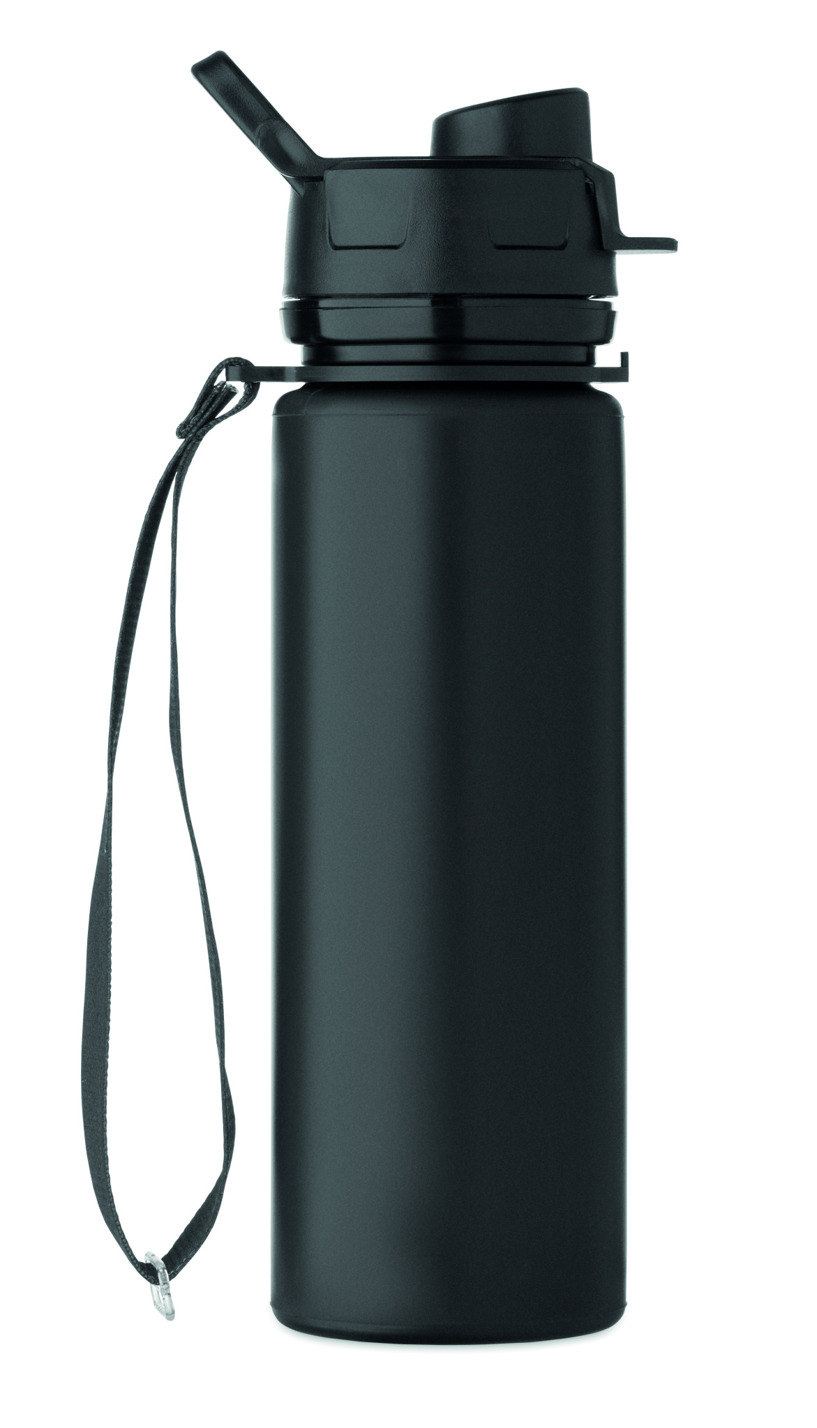 Kokkupandav silikoonist spordipudel PP-kaane, käepideme, polüesterrihma ja läbipaistva pandlaga kinnitamiseks kokkupandult. Lekkevaba. Maht: 500 ml.