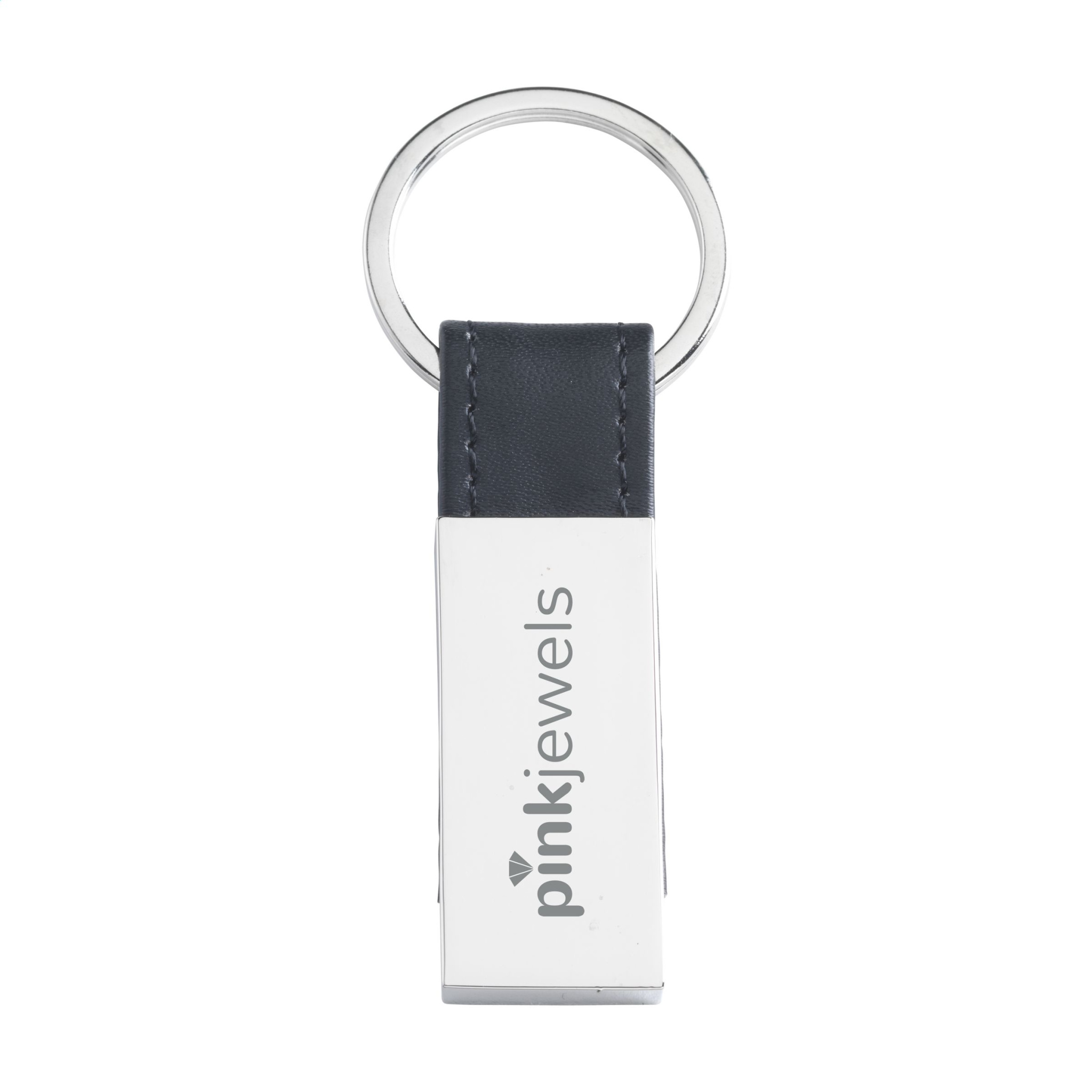 Metallist võtmehoidja kombineeritud musta PU-nahast välimusega materjaliga. Tugeval võtmehoidjal. Iga ese on eraldi karbis.