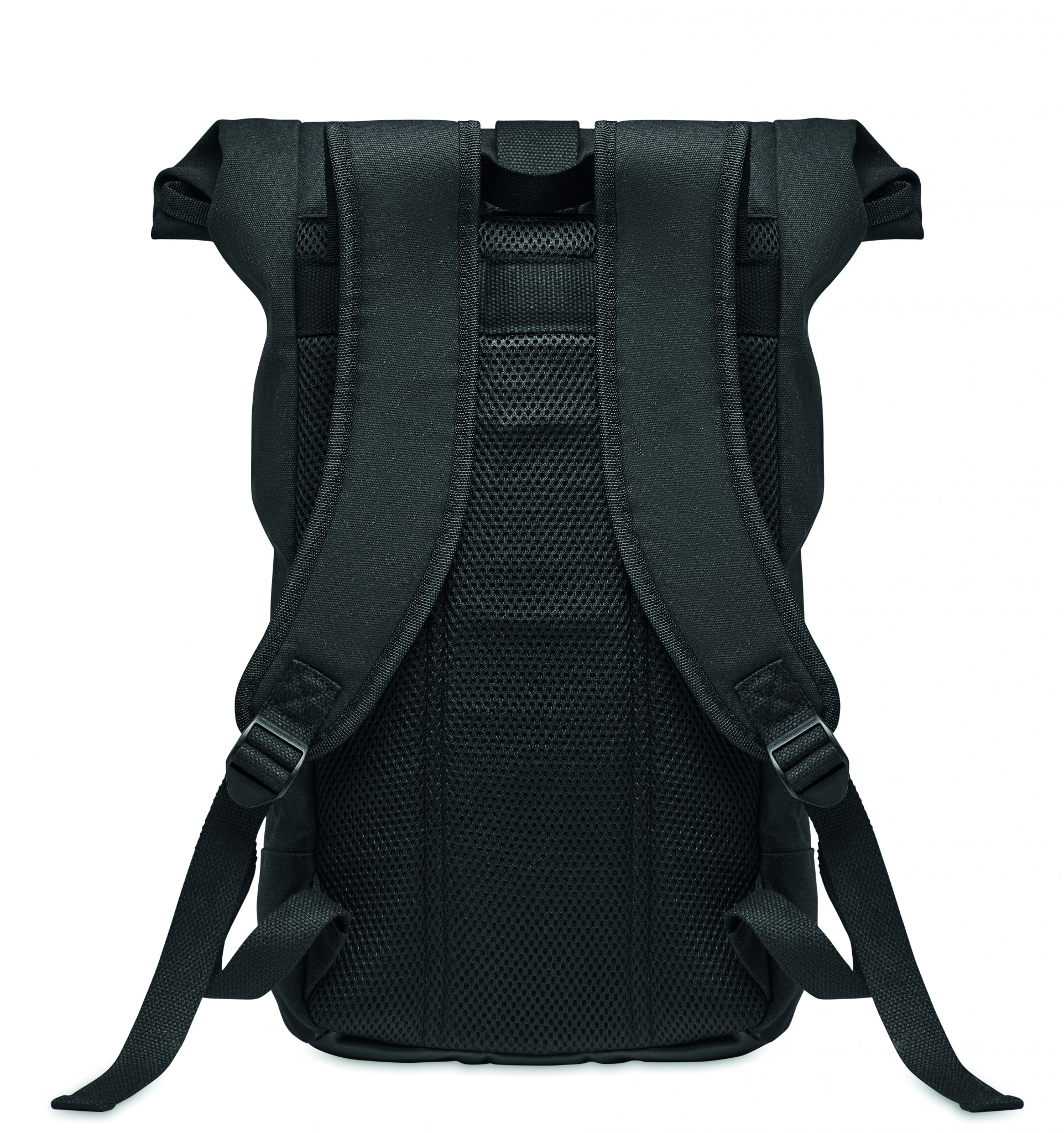 Rolltop seljakott kvaliteetsest 340 gr/m² pestud lõuendist polsterdatud seljatugevdusega. Vooder on RPET 210D.